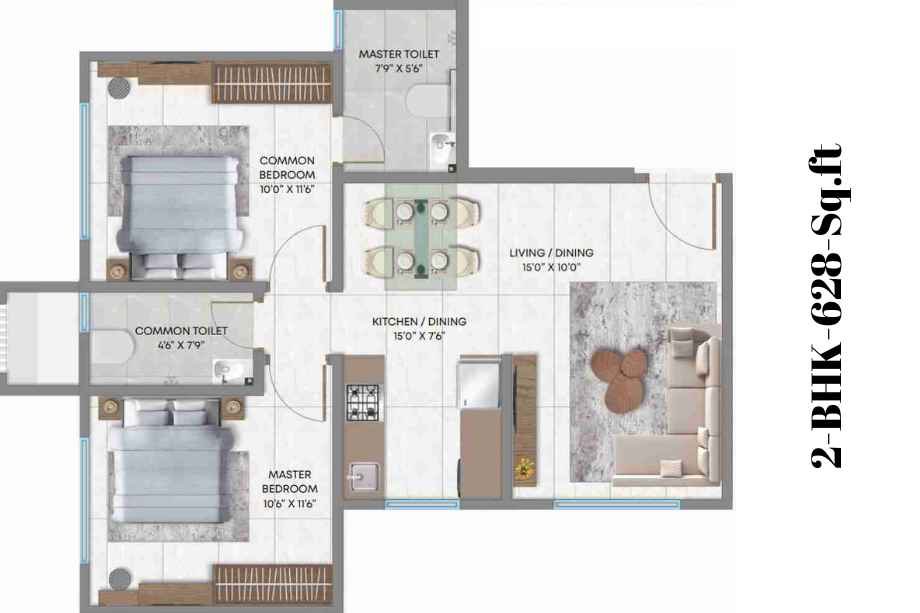 | 2 BHK | 628 Sqft sq. ft. | ₹1.76 Cr* | Unfurnished |