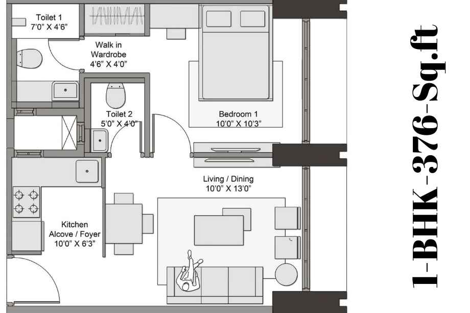 | 1 BHK | 376 sq. ft. | ₹39.00 Lac* |