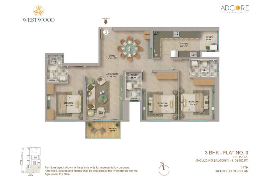 | 3 BHK | 1104 Sqft sq. ft. | Unfurnished |