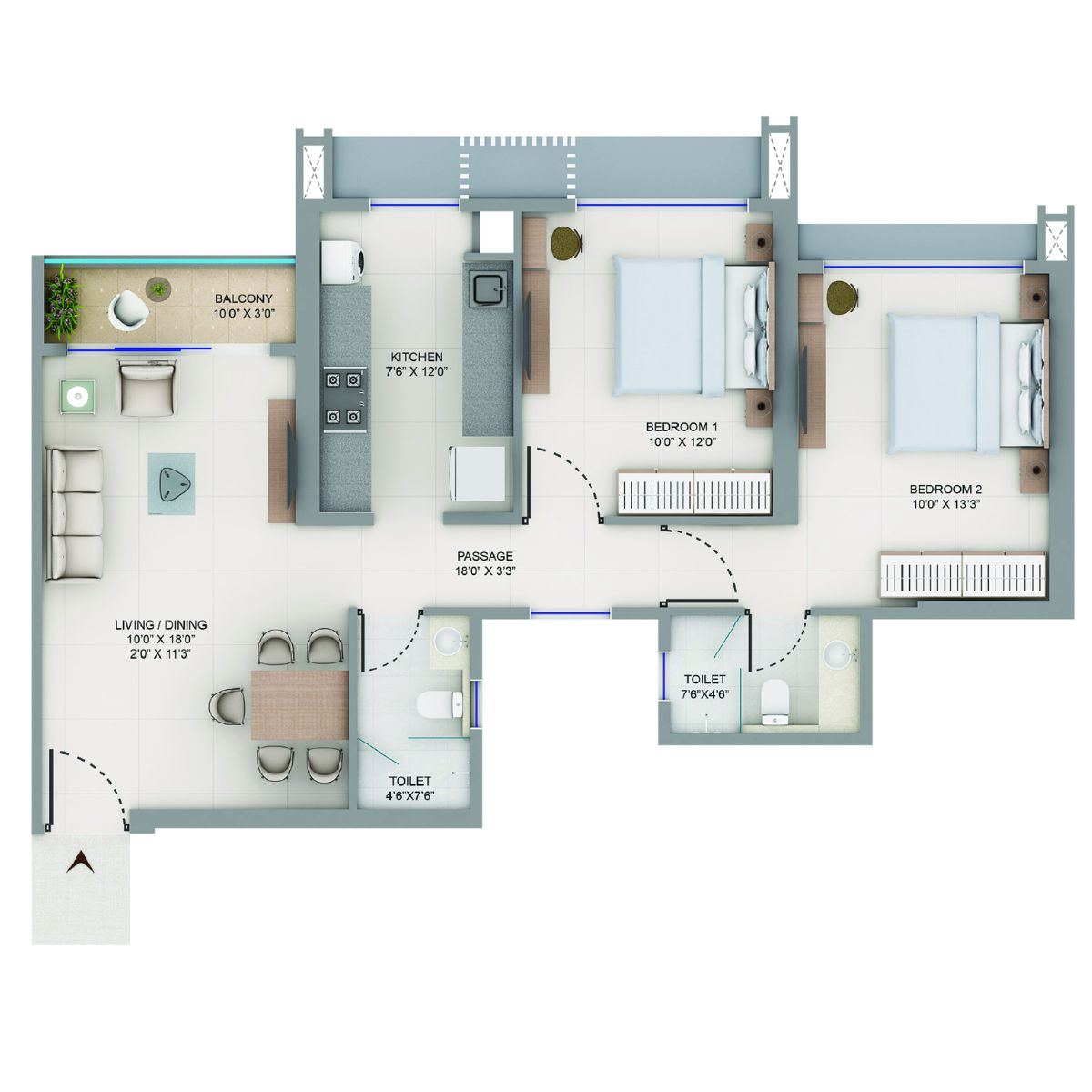 | 2 BHK | 758 Sqft sq. ft. | Unfurnished |