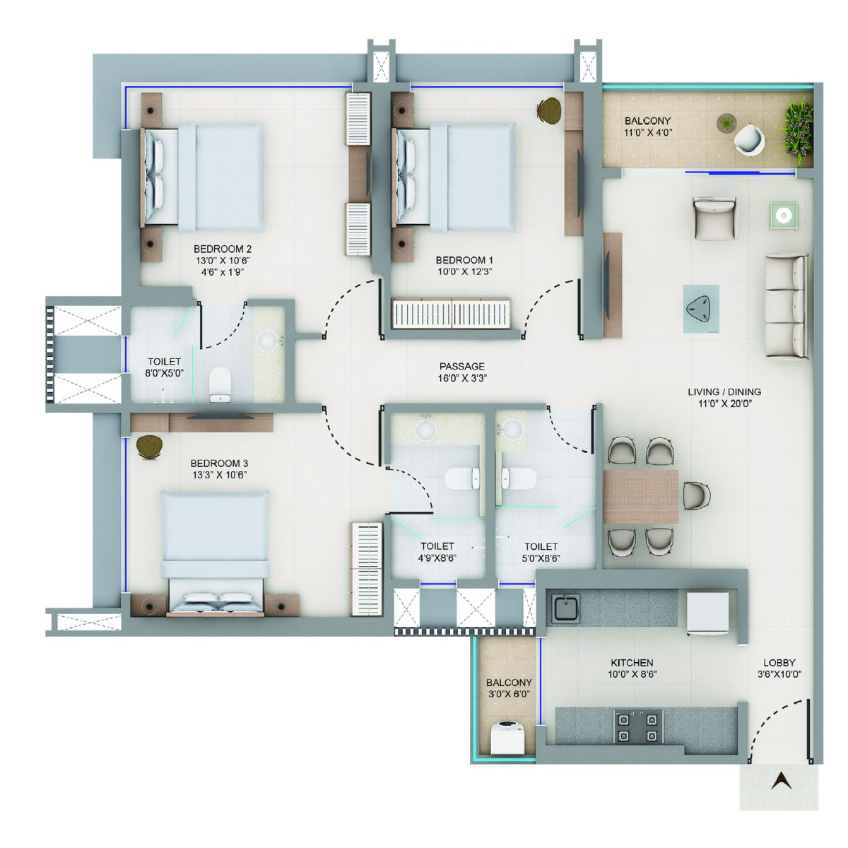 | 3 BHK | 1065 Sqft sq. ft. | Unfurnished |