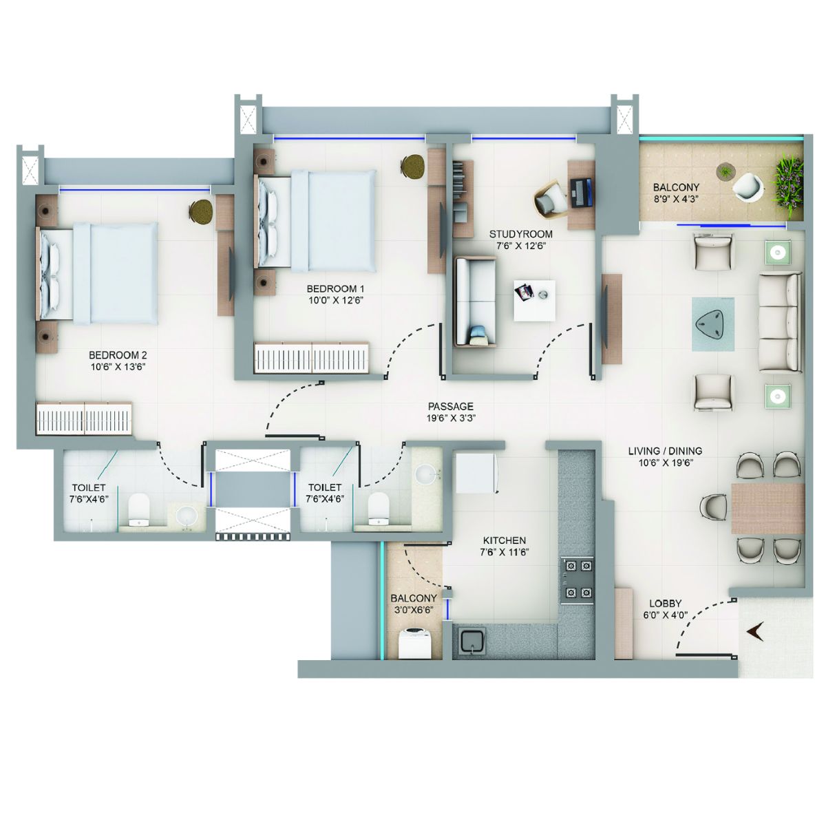 | Carpet Area | 758 - 1065 Sqft | Typology | 2 BHK, 3 BHK |