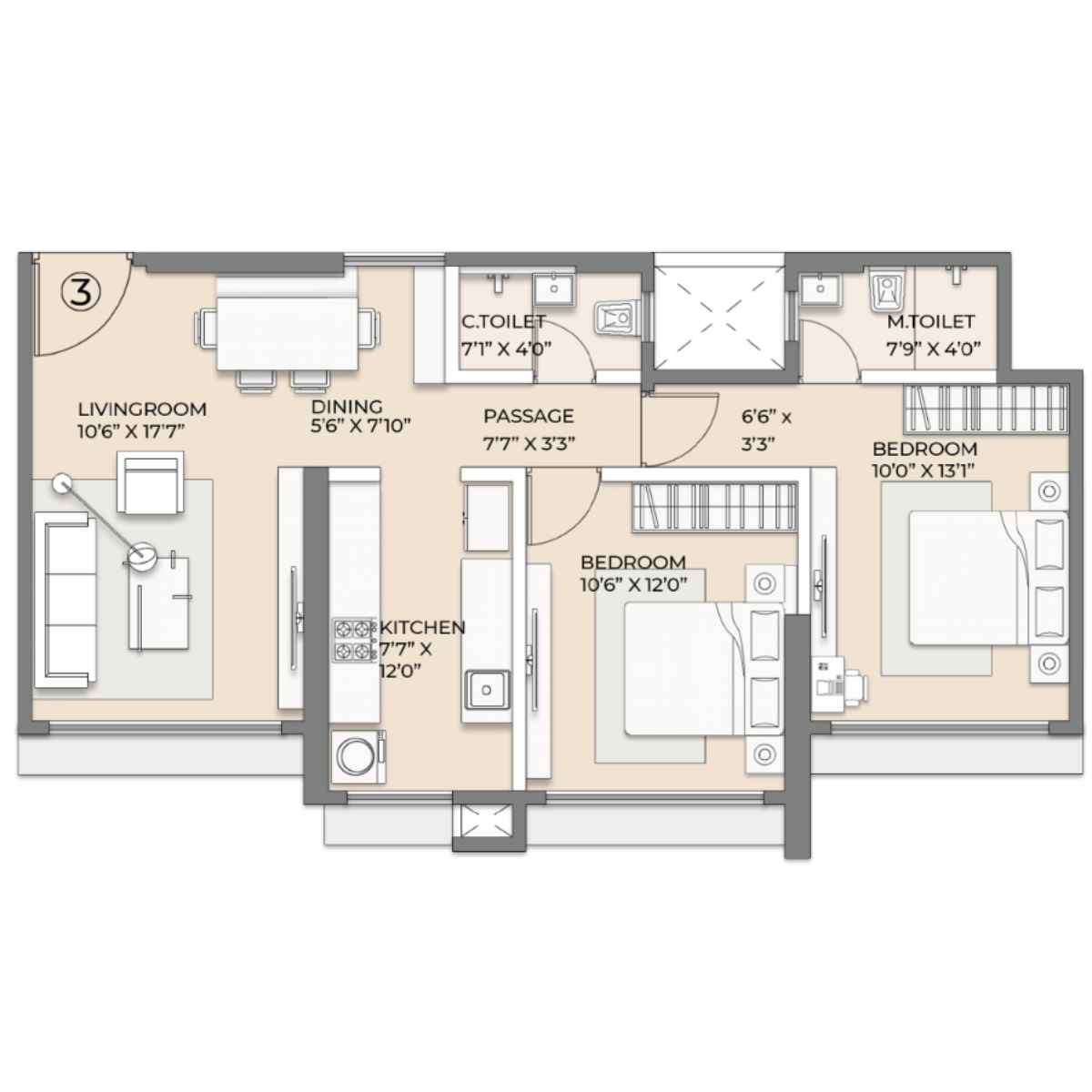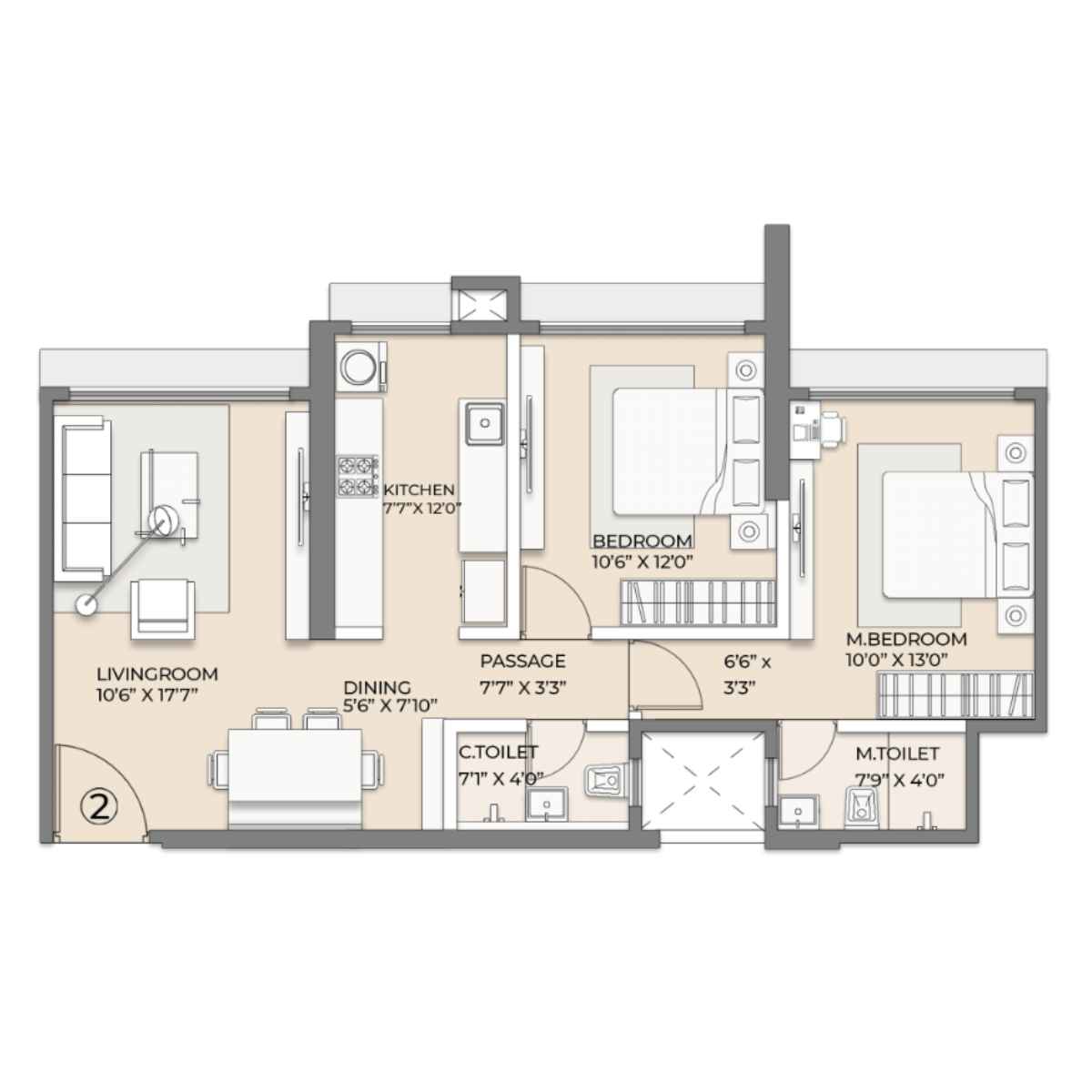 | 2 BHK | 768 Sqft sq. ft. | Unfurnished |