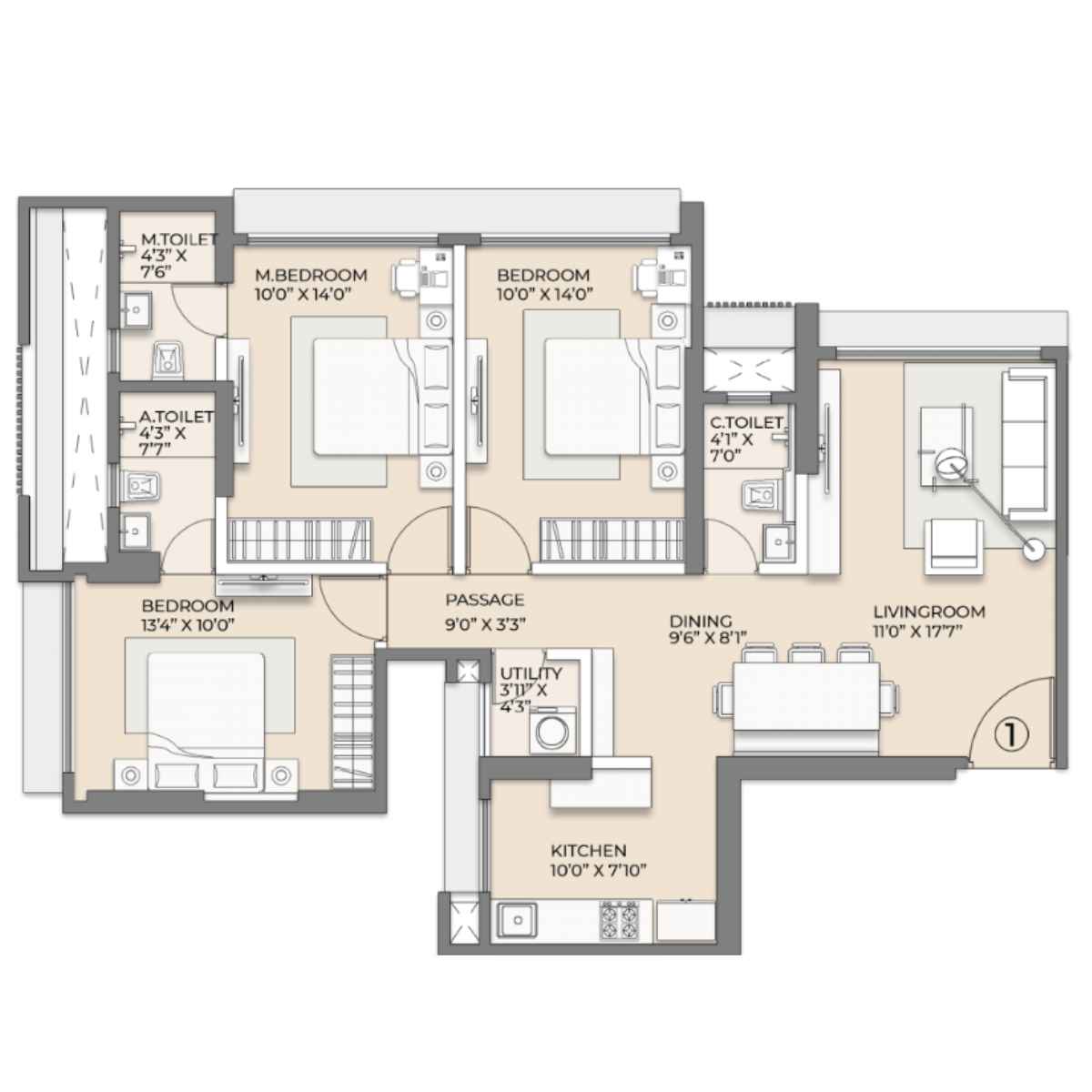 | 3 BHK | 952 Sqft sq. ft. | Unfurnished |