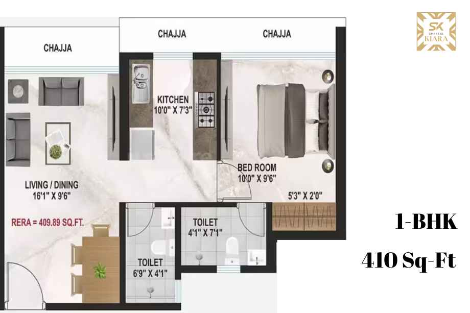 | 1 BHK | 410 Sq.ft sq. ft. | Unfurnished |