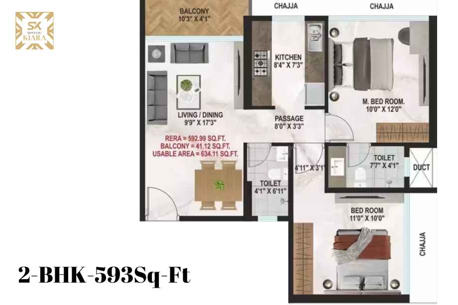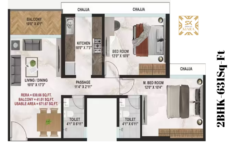 | 2 BHK | 631 Sq.ft sq. ft. | Unfurnished |