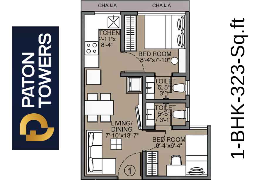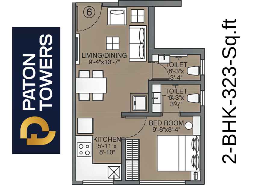 Paton Towers offers 1 BHK and 2 BHK apartments with carpet areas ranging from 323 sq. ft. to 651 sq. ft.