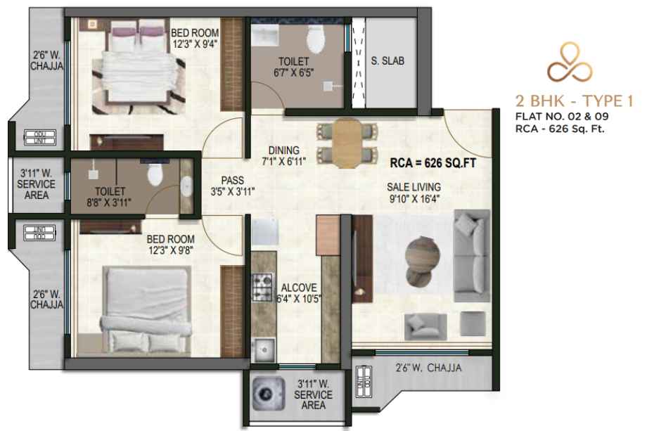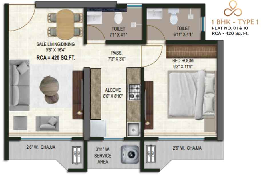 | Carpet Area | 420 - 1109 Sqft | Typology | 1 BHK, 2 BHK, 3.5 BHK |