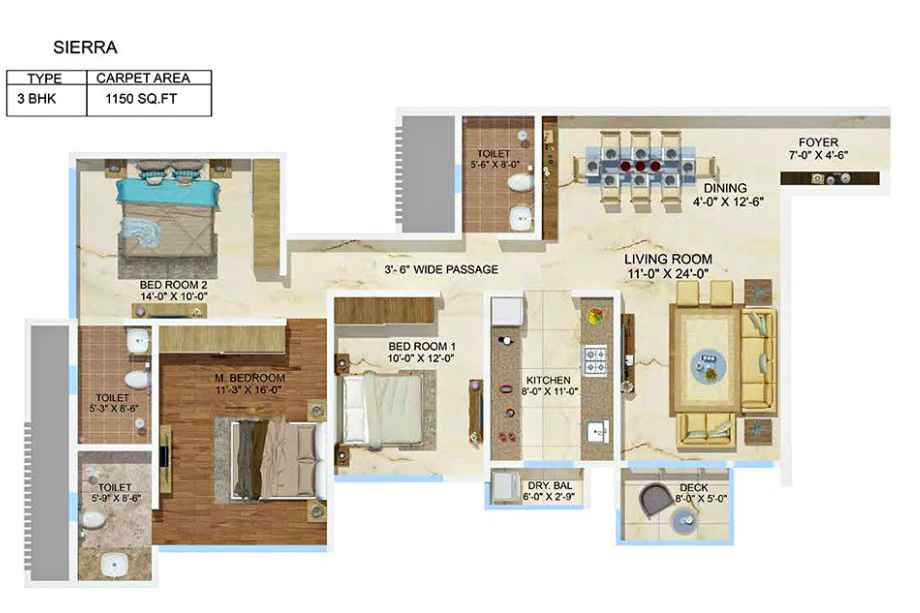 - Intelligently designed apartments with zero space wastage