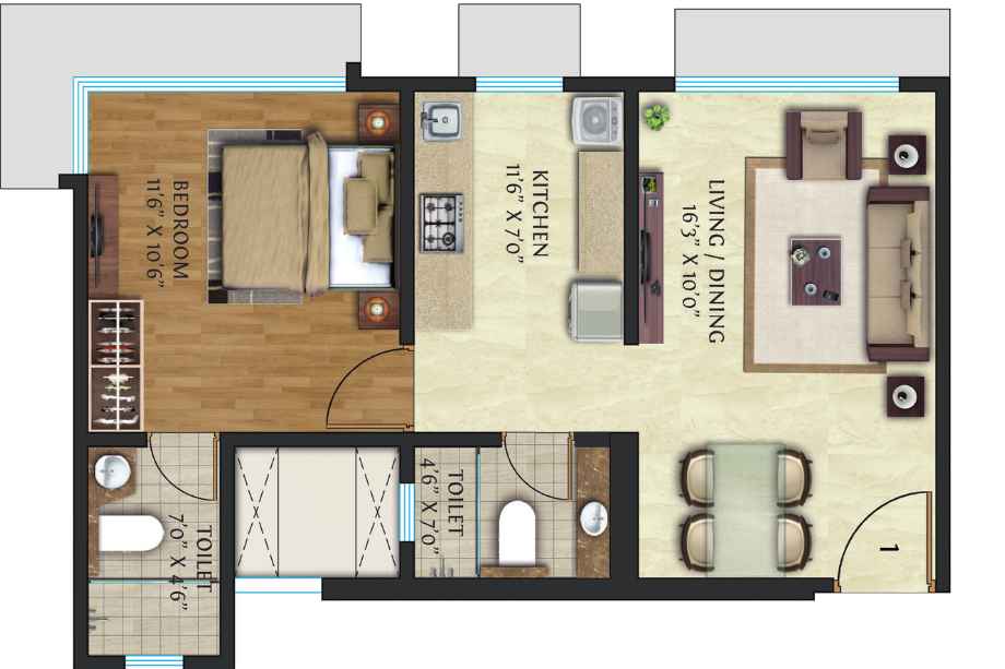| 1 BHK | 431 Sqft sq. ft. | ₹1.34 Cr* | Unfurnished |