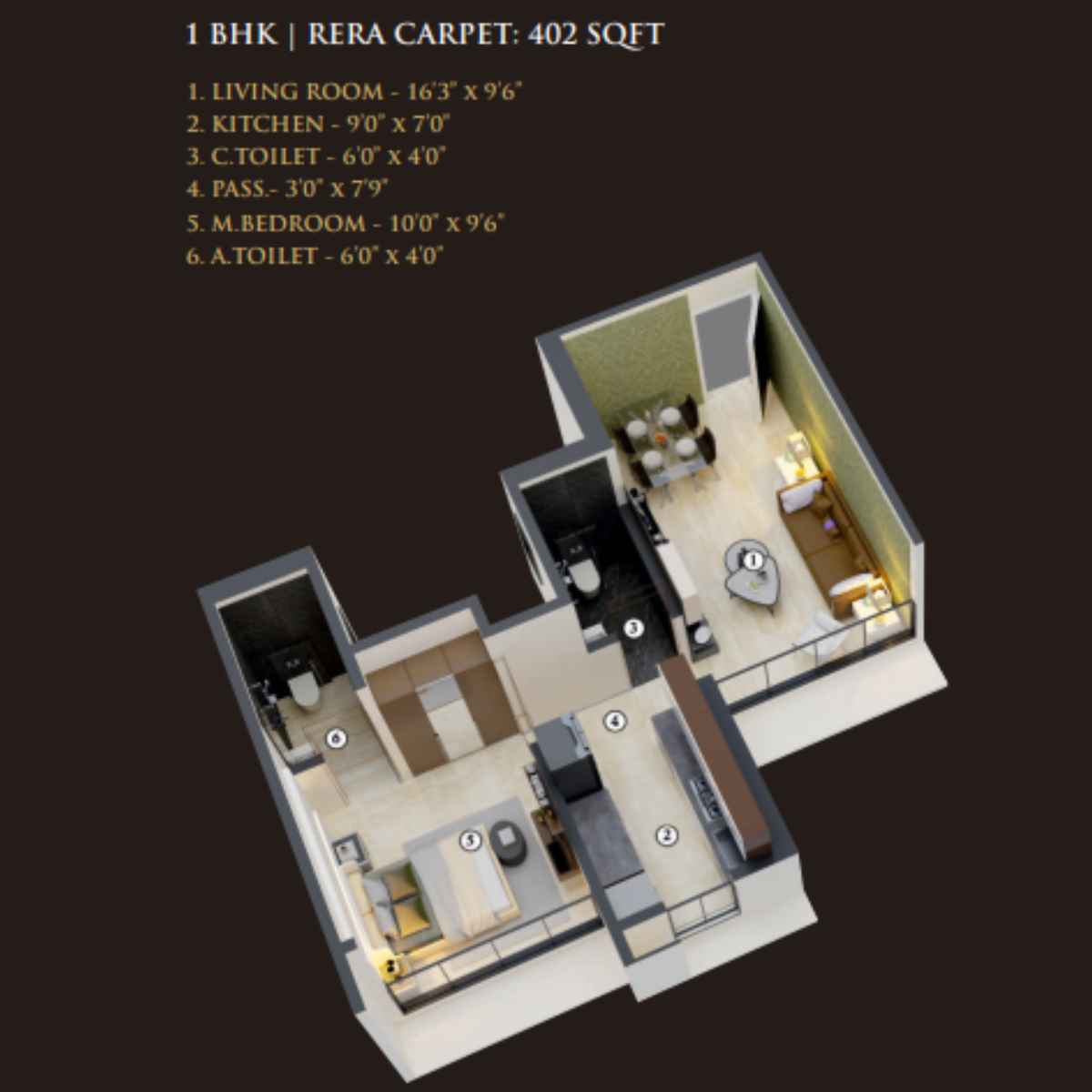 | 1 BHK | 402 Sqft sq. ft. | Unfurnished |