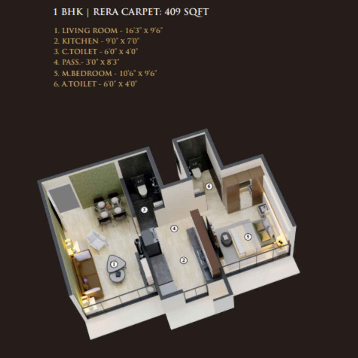 | 1 BHK | 409 Sqft sq. ft. | Unfurnished |