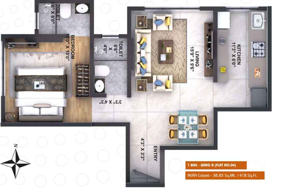 | 1 BHK | 418 sq. ft. | ₹90.30 Lac* | Unfurnished |