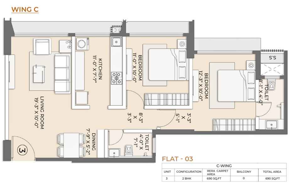 | Carpet Area | 690 - 1154 Sqft | Typology | "2 BHK, 3 BHK" |