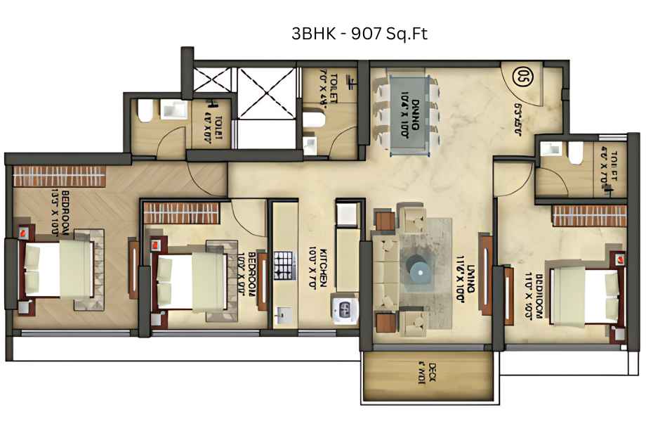 | Carpet Area | 581 – 1003 Sqft | Typology | 2 BHK, 3 BHK |