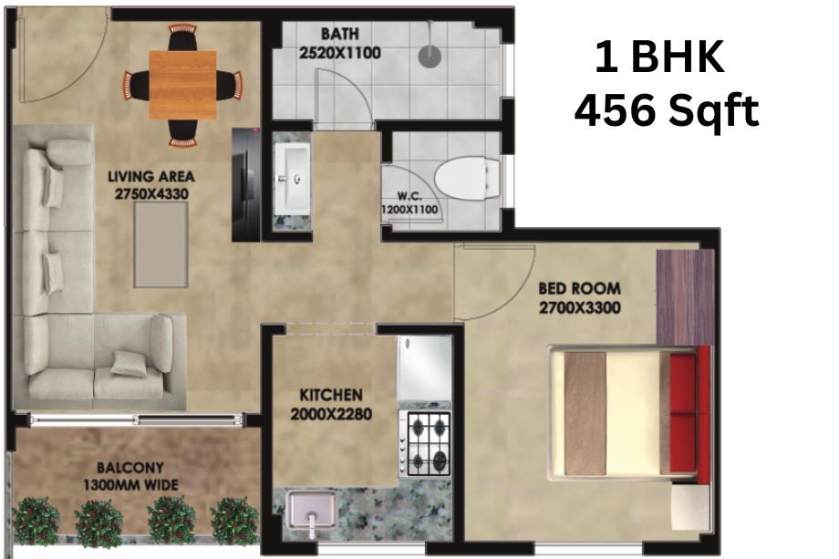 | 1 BHK | 456 Sqft sq. ft. | Unfurnished |