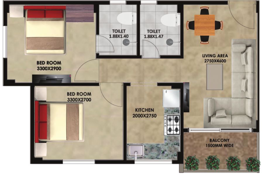 | 2 BHK | 595 Sqft sq. ft. | Unfurnished |