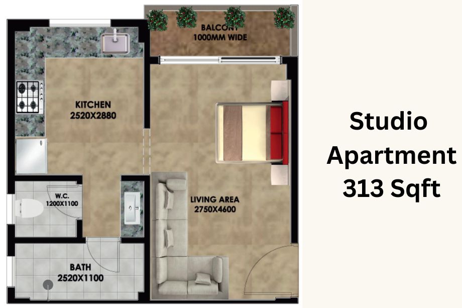 | 1 RK | 313 Sqft sq. ft. | Unfurnished |