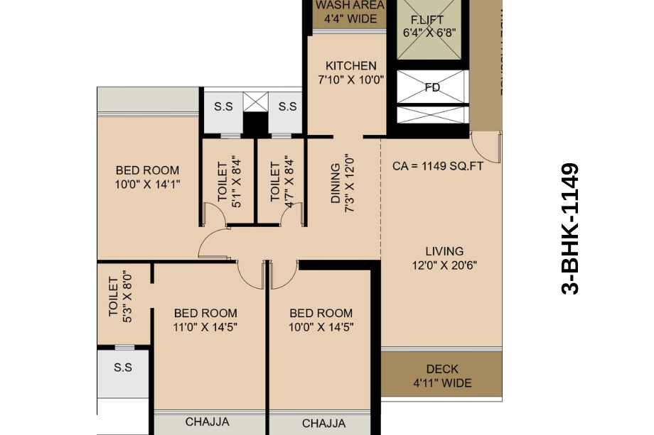| Carpet Area | 1058 Sqft | Typology | 3 BHK |