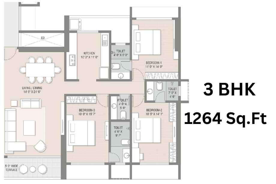 | Carpet Area | 1194 Sqft | Typology | 3 BHK |