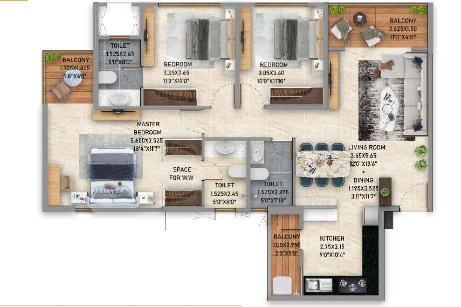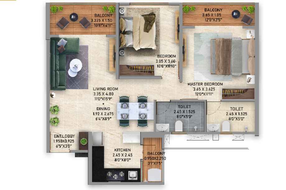 | Carpet Area | 836 - 920 | Typology | 2 BHK, 3 BHK |