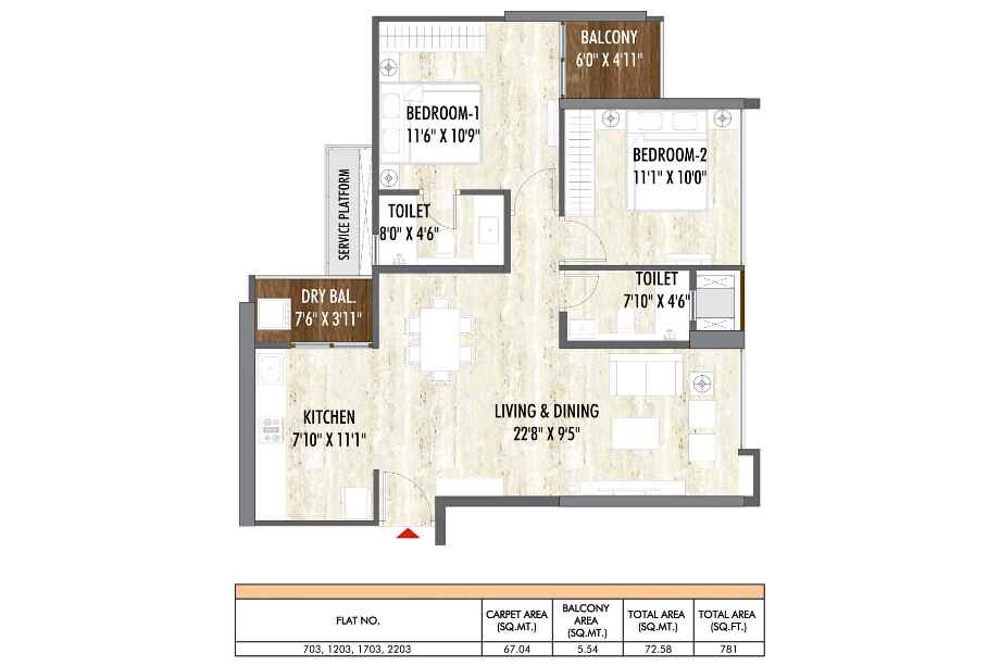 | 2 BHK | 781 Sqft sq. ft. | Unfurnished |