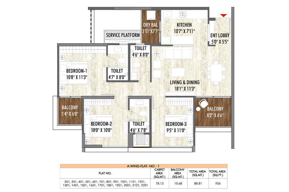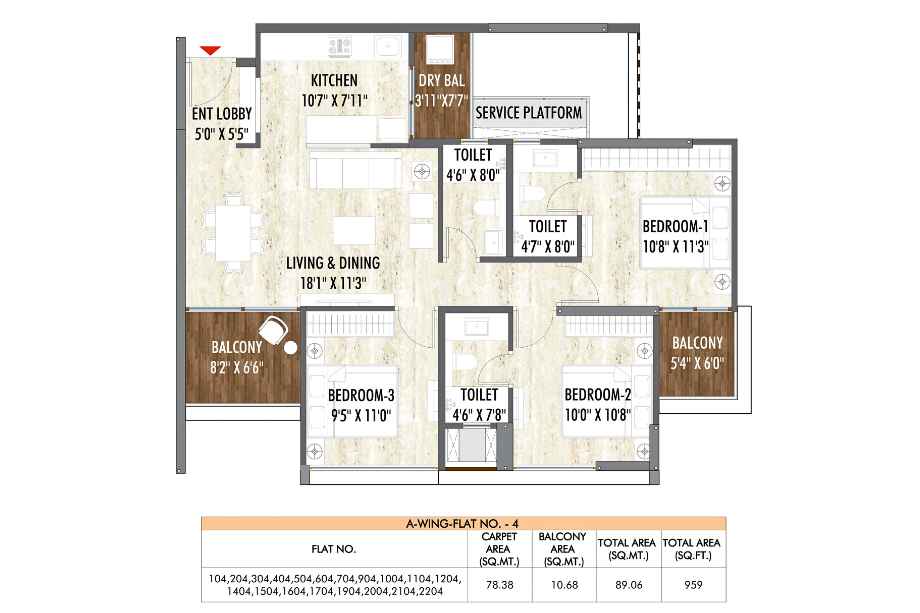 | Carpet Area | 781 - 959 | Typology | 2 BHK, 3 BHK |