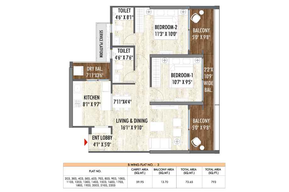 | 2 BHK | 793 Sqft sq. ft. | Unfurnished |