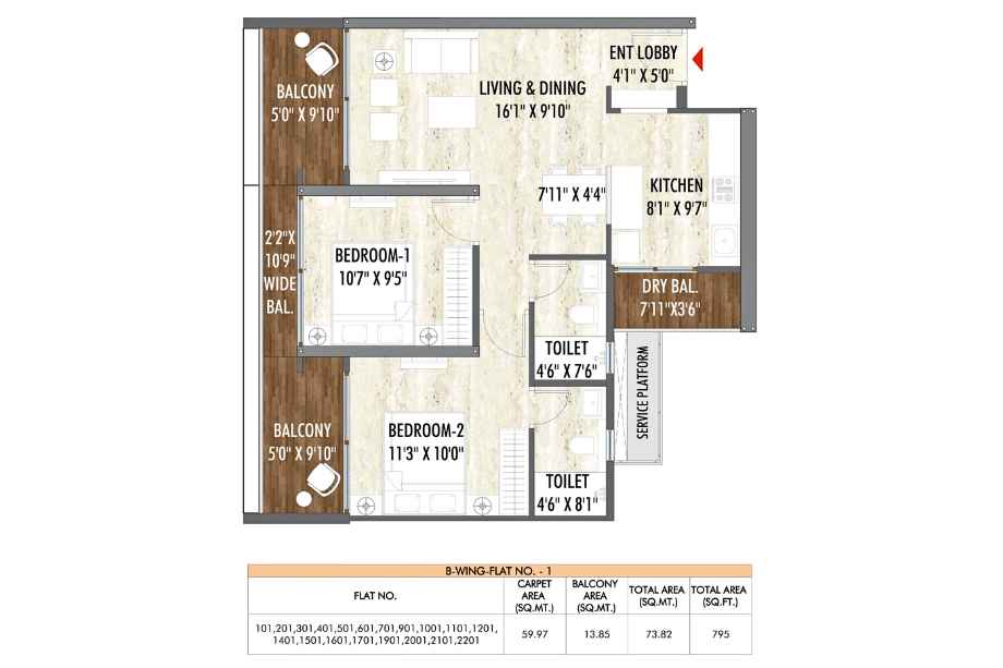 | 2 BHK | 795 Sqft sq. ft. | Unfurnished |