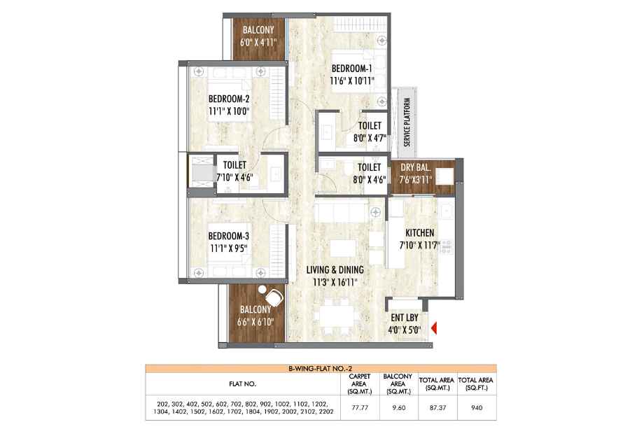 | 3 BHK | 940 Sqft sq. ft. | Unfurnished |