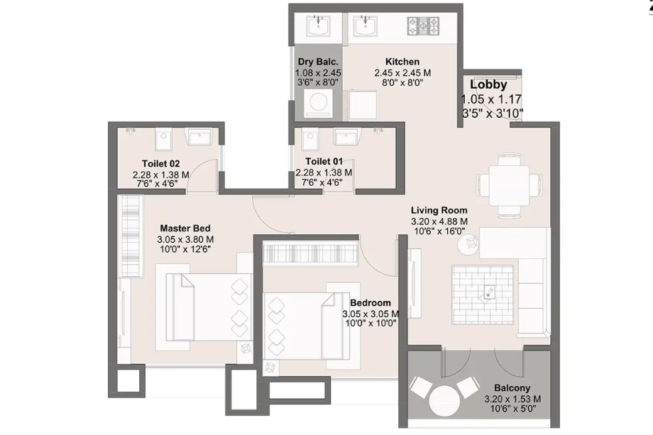 | Carpet Area | 696-989 Sqft | Typology | 2 BHK, 3 BHK |