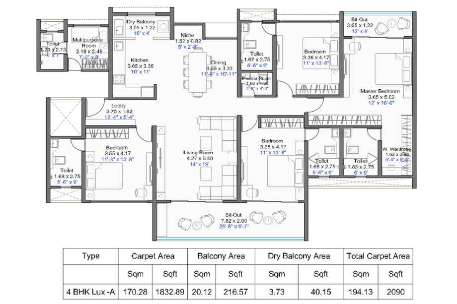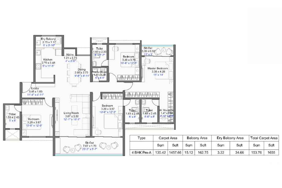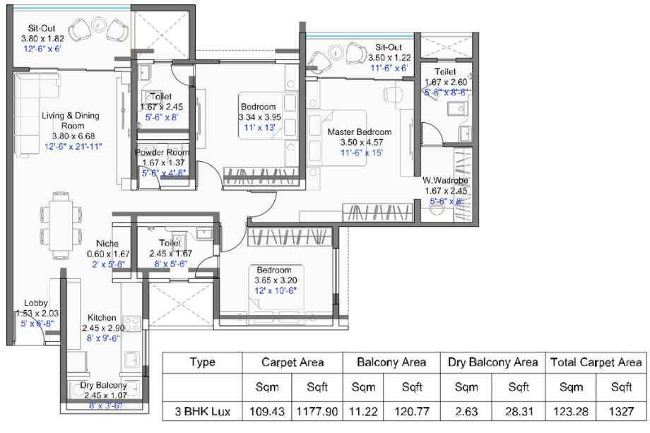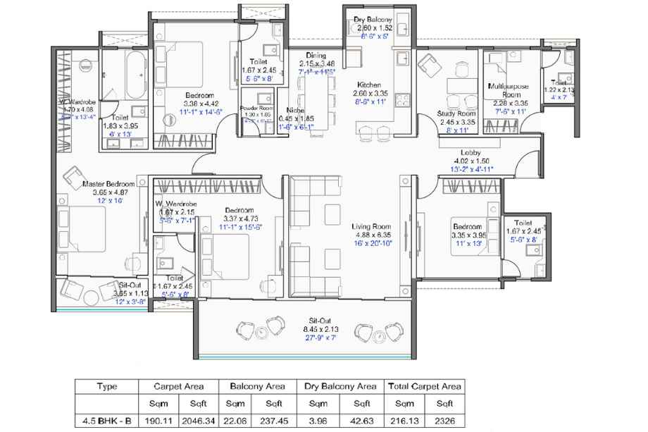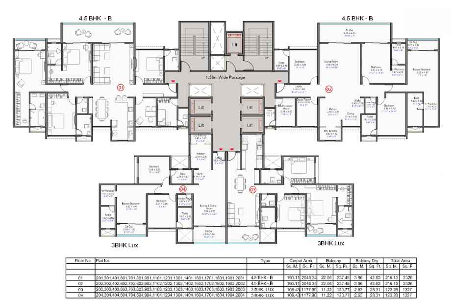 | Carpet Area | 1121-2326 Sqft | Typology | 3 BHK, 4 BHK, 4.5 BHK |