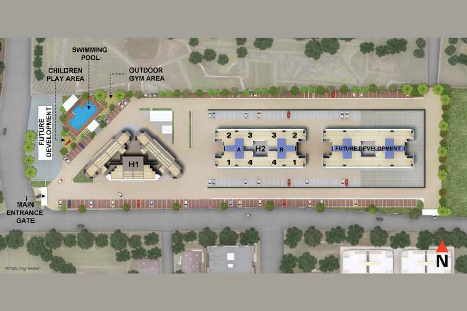 UV rays protected 3-side open apartments with ample sunlight and ventilation.