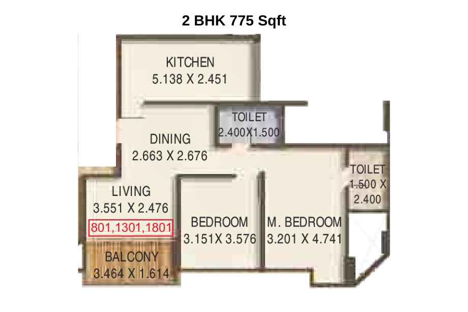 | 2 BHK | 775 Sqft sq. ft. | Unfurnished |