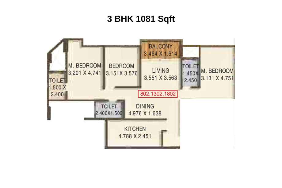 | 3 BHK | 1081 Sqft sq. ft. | Unfurnished |