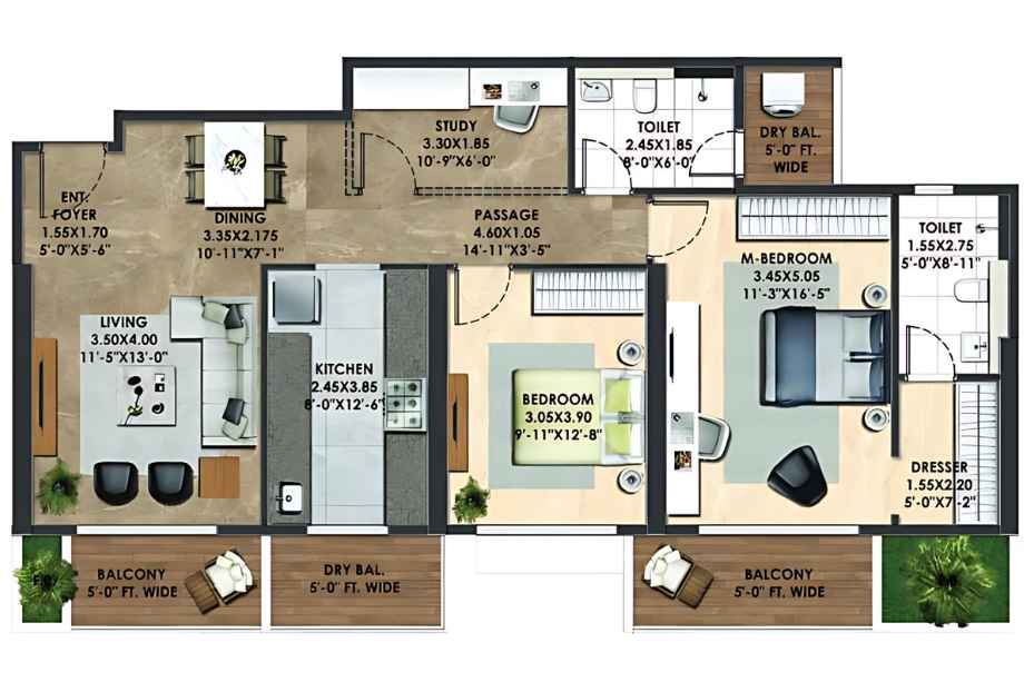 | 3 BHK | 1159 sq. ft. | ₹1.86 Cr* | Unfurnished |