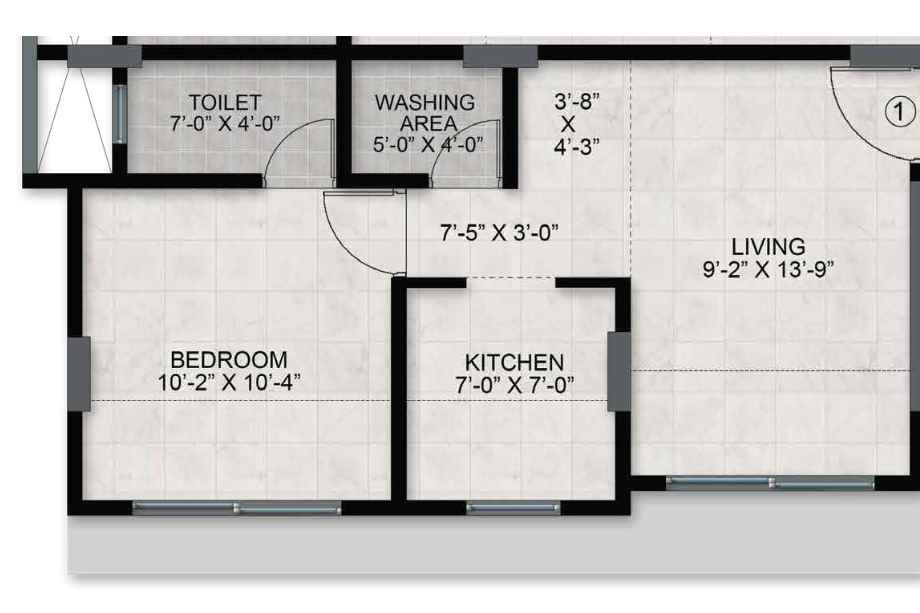 | 1 BHK | 387 Sqf sq. ft. | Unfurnished |
