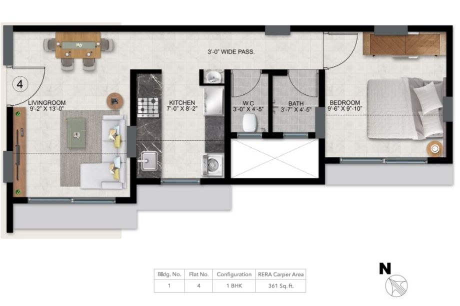| 1 BHK | 361 Sqft sq. ft. | Unfurnished |