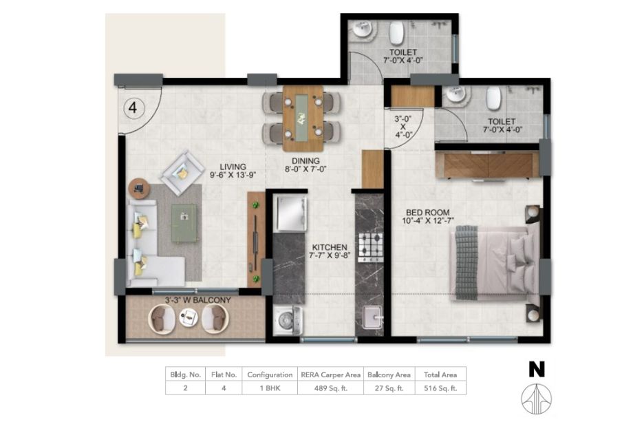 | 1 BHK | 516 Sqft sq. ft. | Unfurnished |