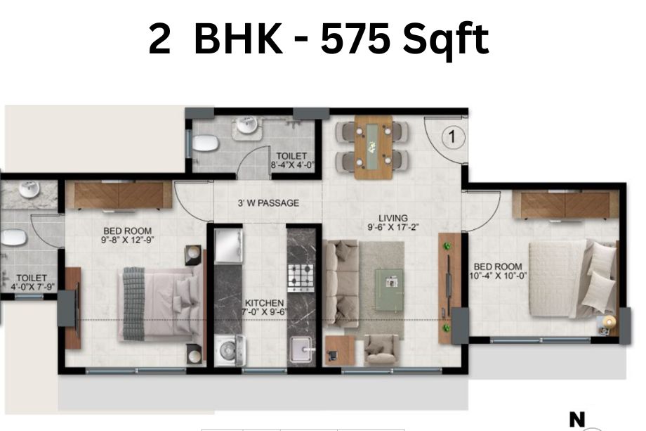 | 2 BHK | 575 Sqft sq. ft. | Unfurnished |