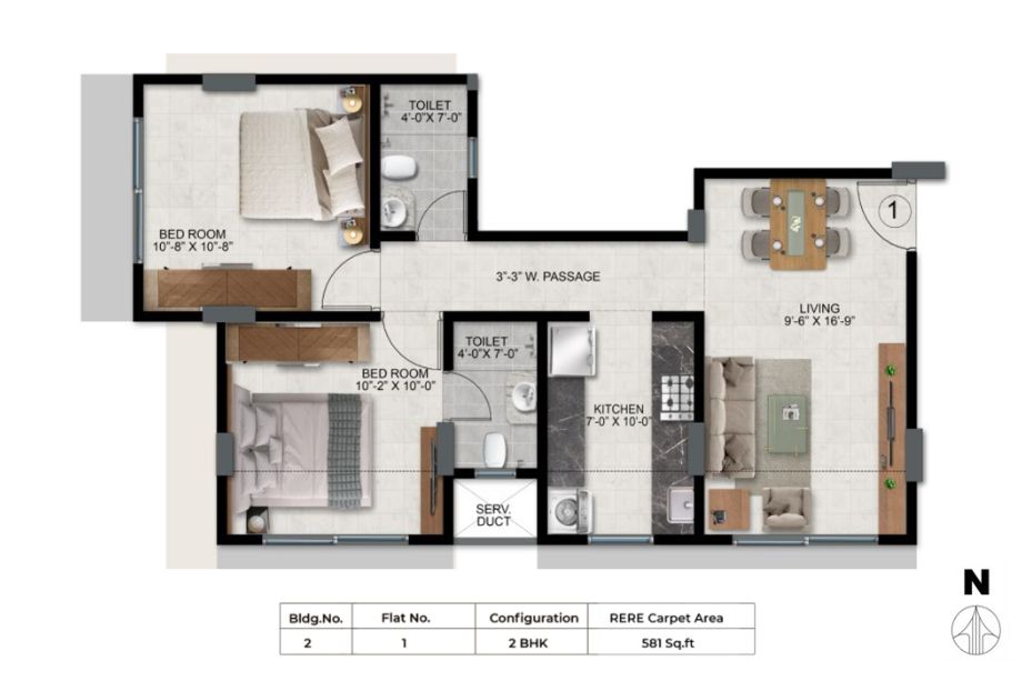 | 2 BHK | 581 Sqft sq. ft. | Unfurnished |