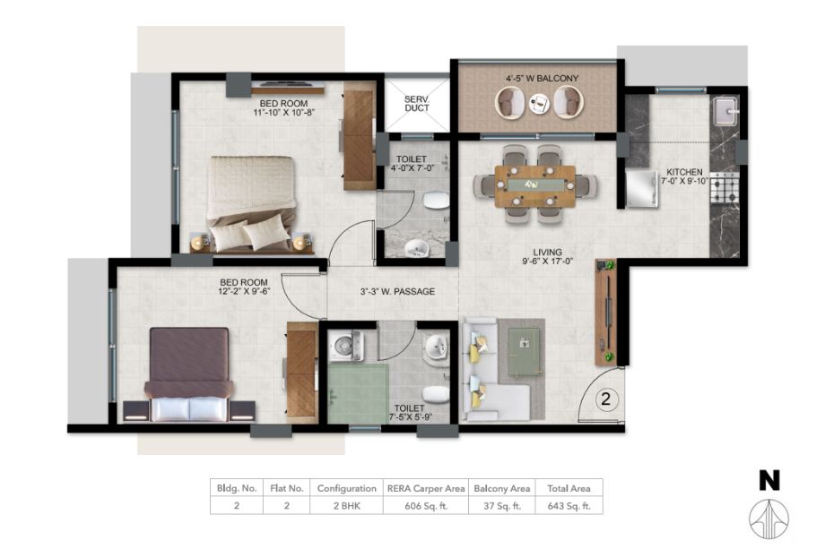 | 2 BHK | 643 Sqft sq. ft. | Unfurnished |
