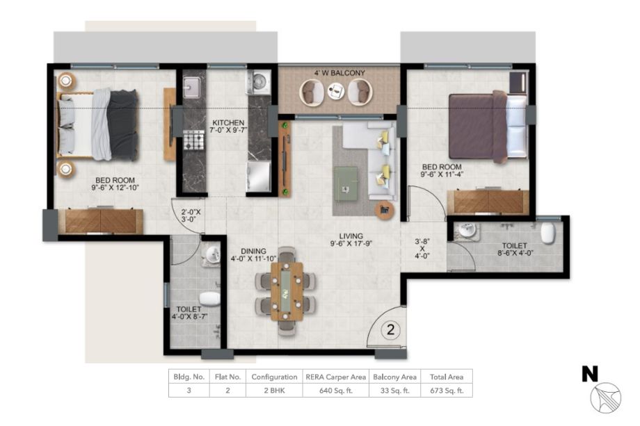 | 2 BHK | 673 Sqf sq. ft. | Unfurnished |