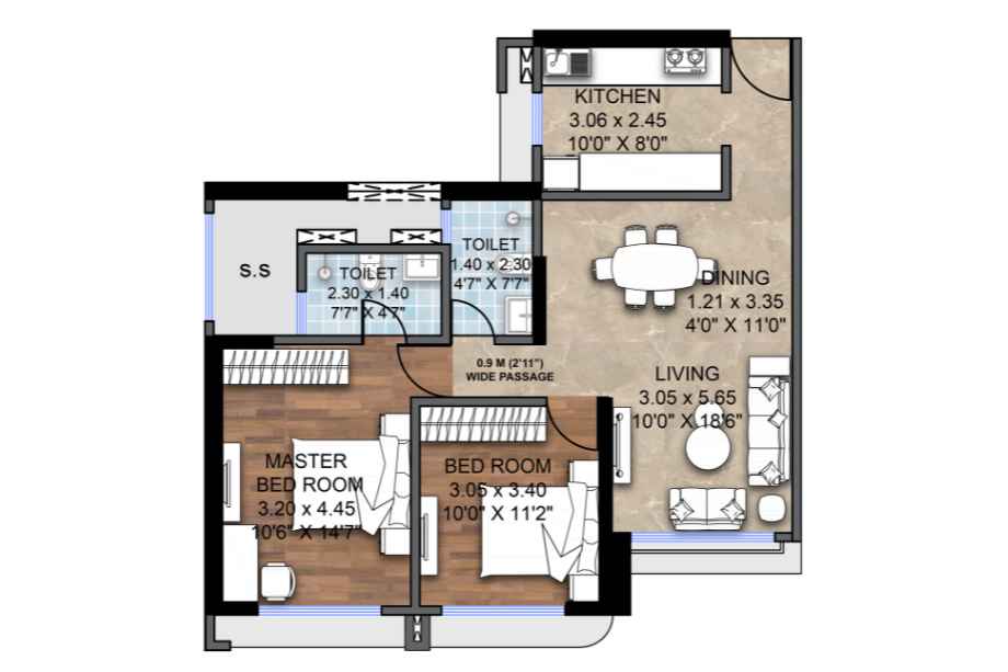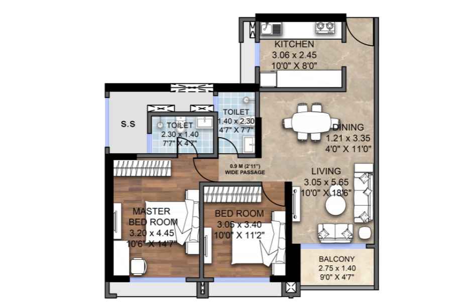 | Carpet Area | 735 - 943 Sqft | Typology | 2 BHK, 3 BHK |