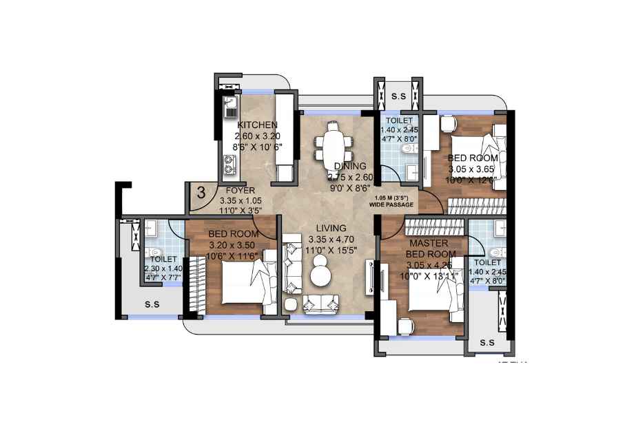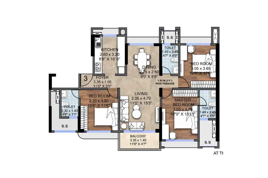 | 3 BHK | 943 Sqft sq. ft. | Unfurnished |