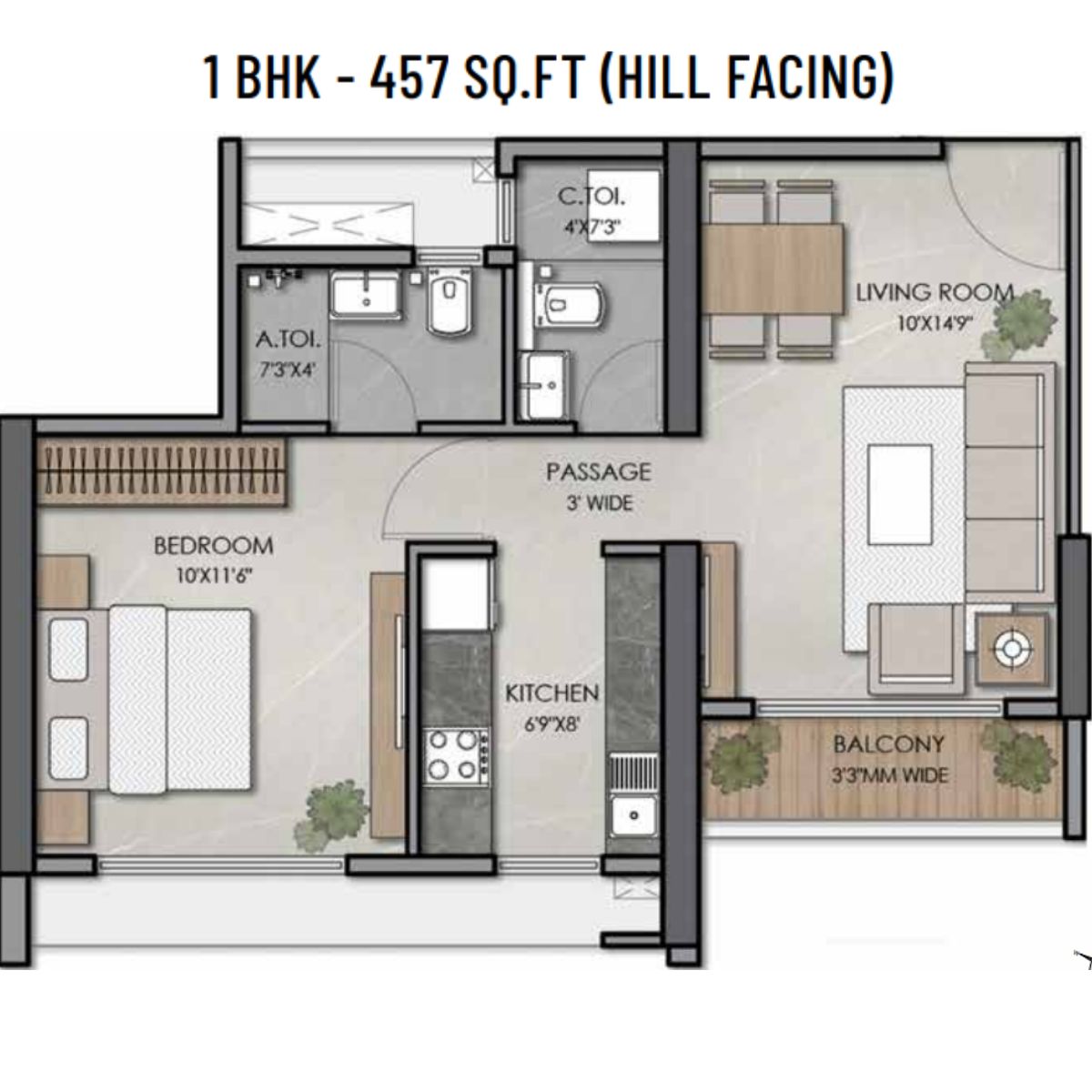 | 1 BHK | 457 Sqft sq. ft. | Unfurnished |