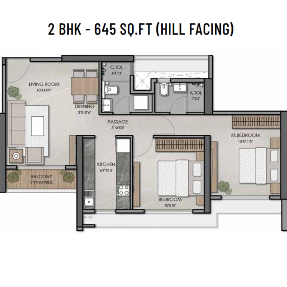 | 2 BHK | 645 Sqft sq. ft. | Unfurnished |