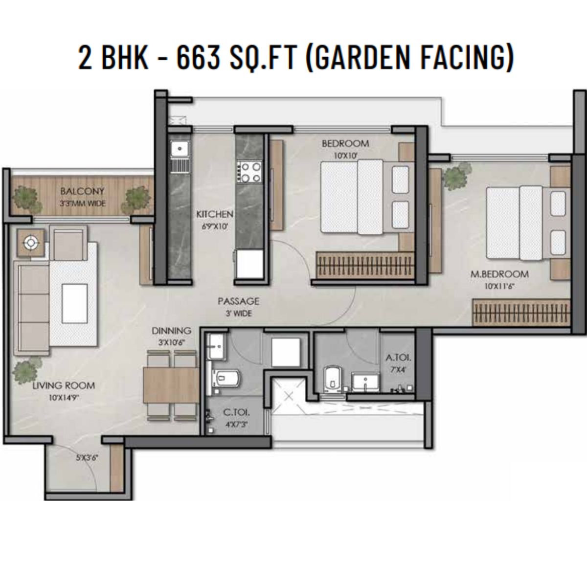 | 2 BHK | 663 Sqft sq. ft. | Unfurnished |