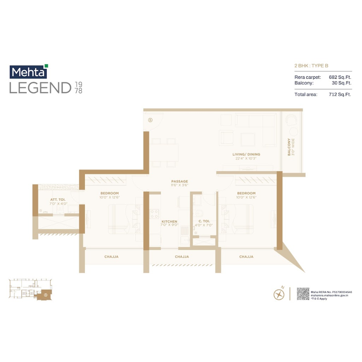 | 2 BHK | 712 Sqft sq. ft. | Unfurnished |