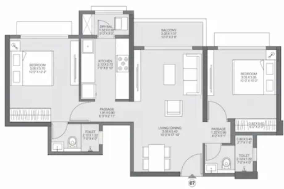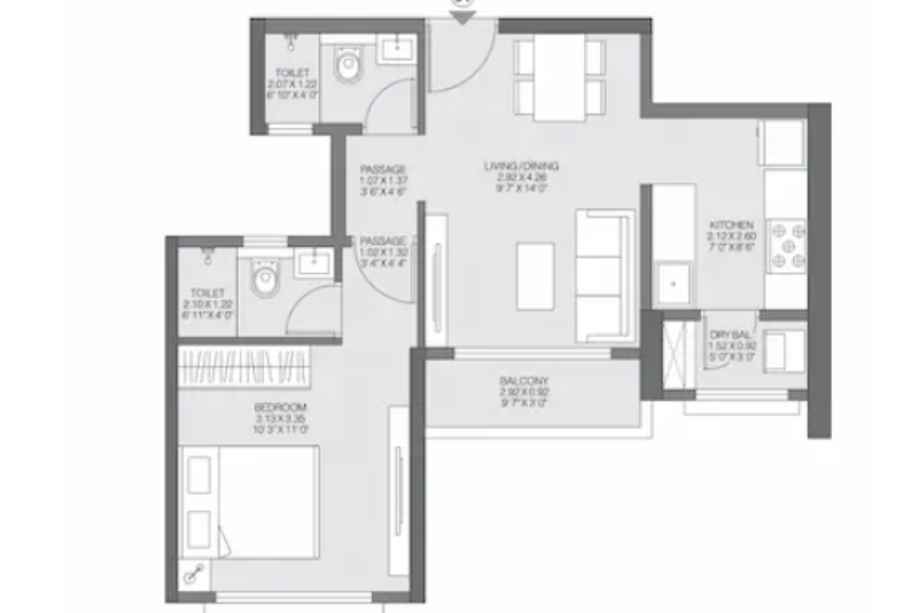 | Carpet Area | 370 – 502 Sqft | Typology | 1 BHK, 2 BHK |